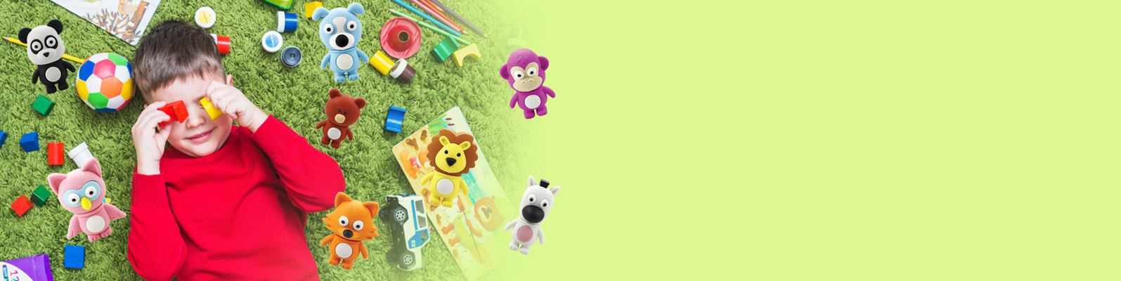 King Egg Cubic Erasers, Lucky Egg Animal Erasers, Happy Egg Animal Erasers – these collections of surprise toys feature erasers of various forms and shapes that separate into pieces and can be re-arranged to their original shapes, similar to puzzles or construction toys. Each eraser measures from 1 to 2.5 inches in size. By constructing and deconstructing small toys like these, kids practice finger and hand dexterity, build small muscles, and improve hand-eye coordination.